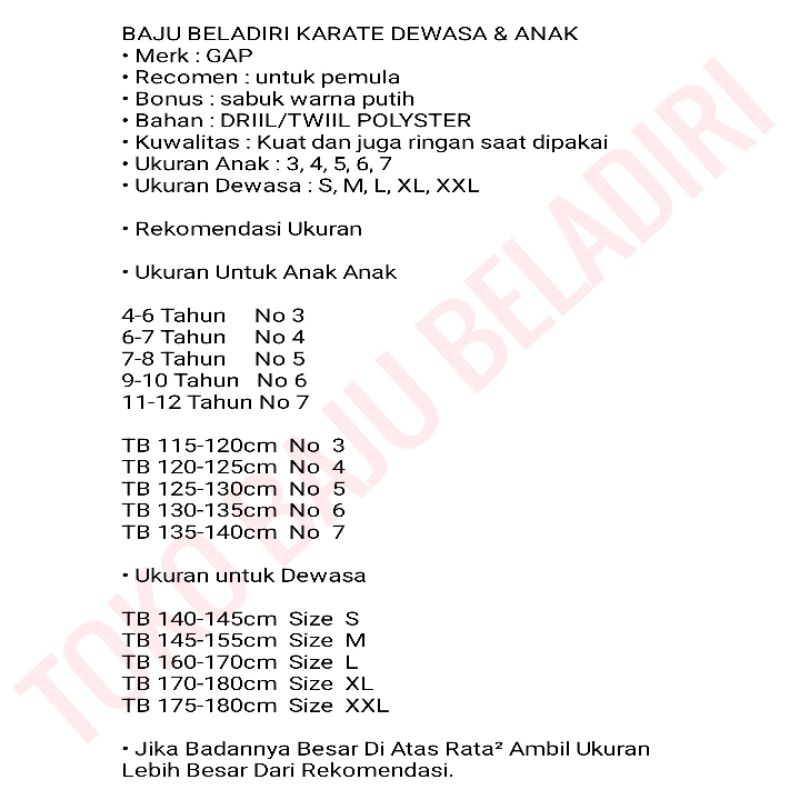 BAJU KARATE DEWASA BAJU KARATE ANAK GAP