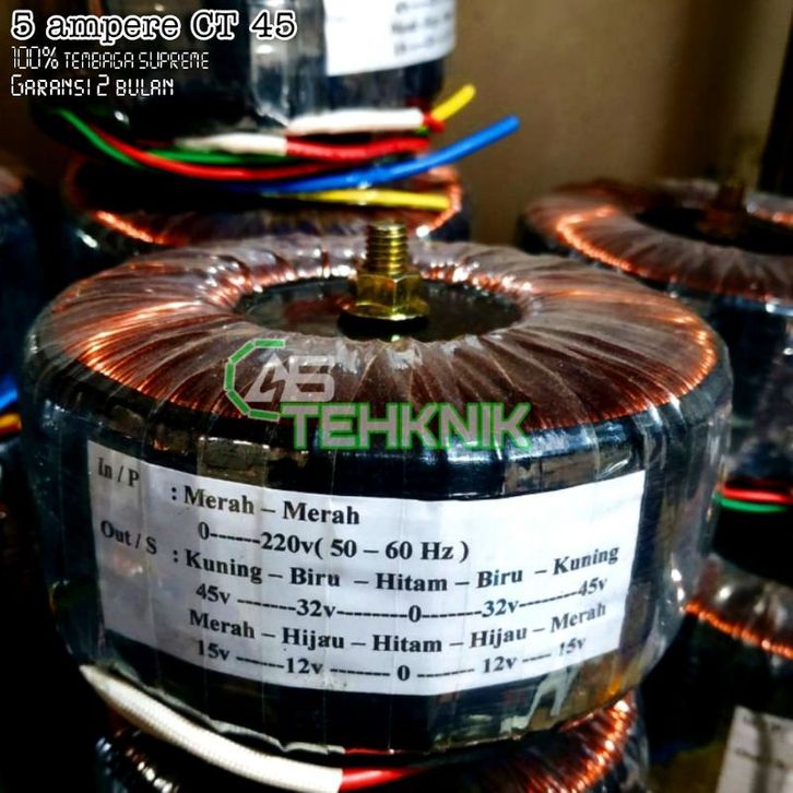 TRAFO 5 AMPERE / TRAFO 5 AMPERE MURNI / TRAFO TEROID DONAT 5A CT 45V-32V
