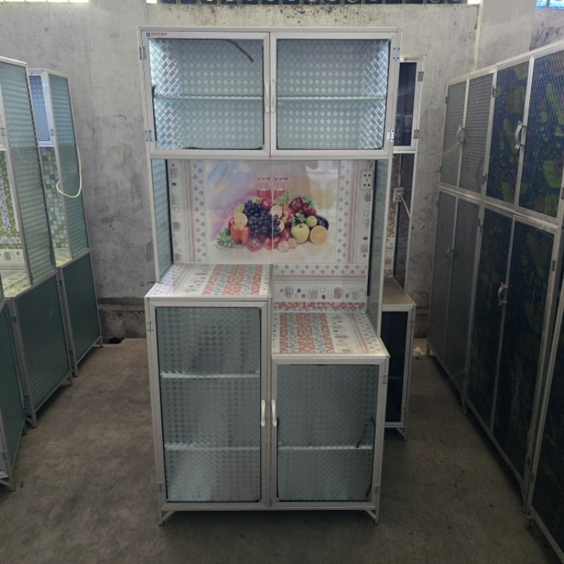 RAK PIRING MINIMALIS MODERN KACA KERAMIK TERTUTUP SERBAGUNA ALUMUNIUM STAINLESS 2 PINTU UNDAK PREMIUM MAGICOM MURAH