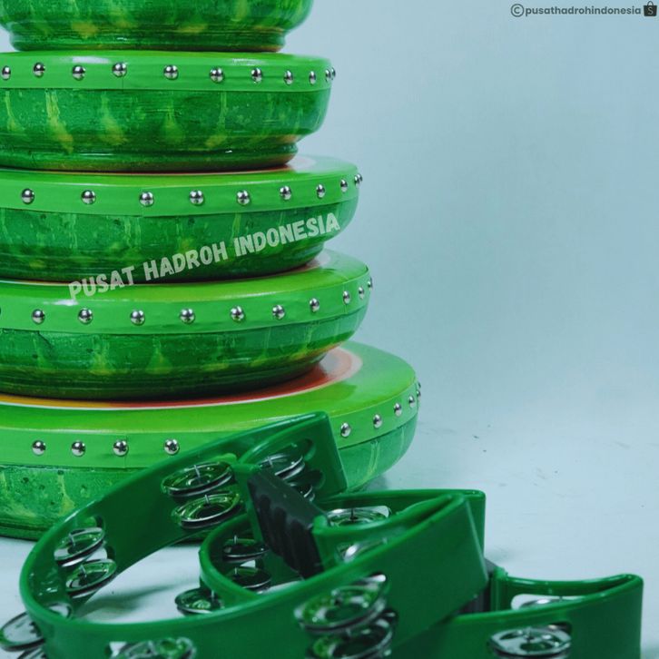 Rebana Qasidah Motif Keramik Hijau 1 Set Isi 10 Rebana Hadroh Banjari Terbangan Lasqi Fullset Susun 8 FREE TAS