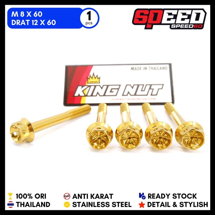 Baut M 8 x 60 Drat 12 x 60 Gold Probolt Stainless Steel King Nut Thailand