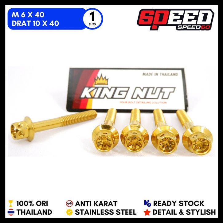 Baut M 6 x 40 Drat 10 x 40 Gold Probolt Stainless Steel King Nut Thailand
