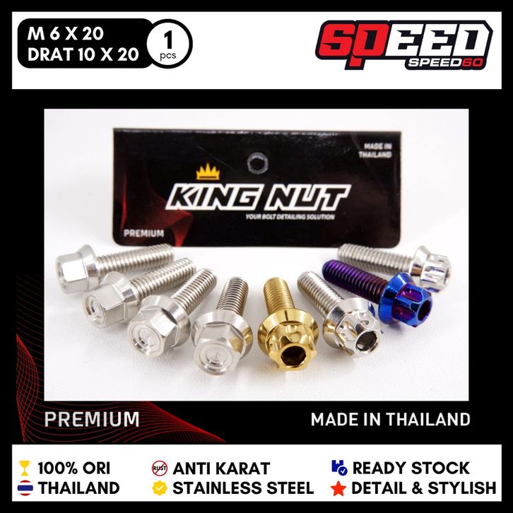 Baut M 6 x 20 Drat 10 x 20 HX Orbit Premium King Nut Stainless Probolt Thailand