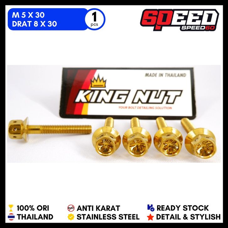 Baut M 5 x 30 Drat 8 x 30 Probolt Stainless Steel King Nut Thailand