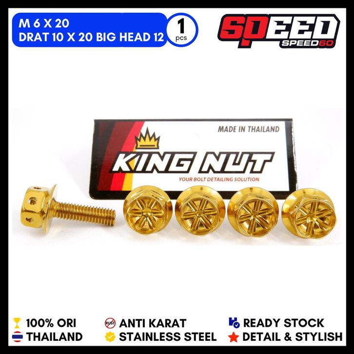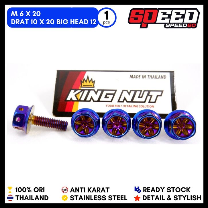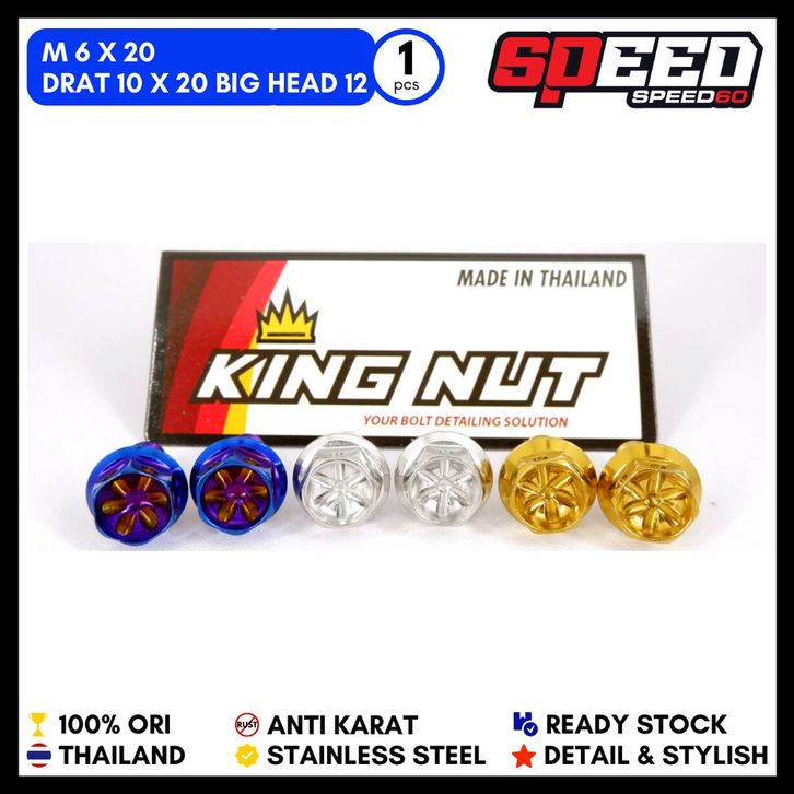 Baut M 6 x 20 Drat 10 x 20 Kepala 12 Probolt Stainless King Nut Thailand