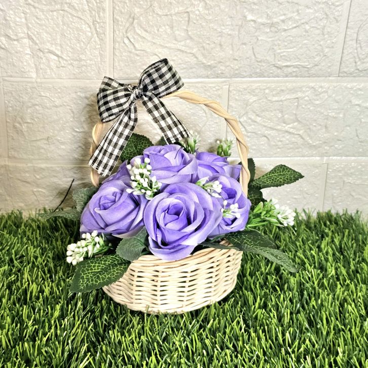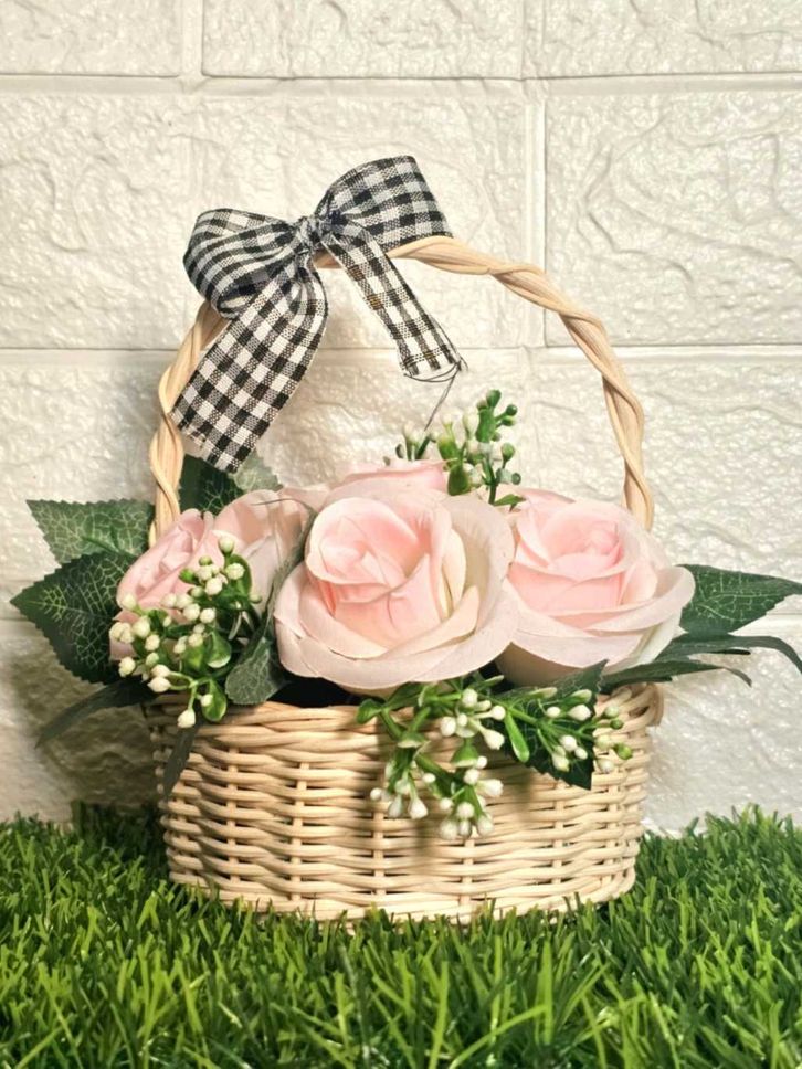 Tanaman Hiasan Bunga Pajangan Mawar 6 Pot Rotan Unik Lucu Minimalis Ukuran Tinggi 17cm Diameter 12cm Dekorasi Rumah Hias