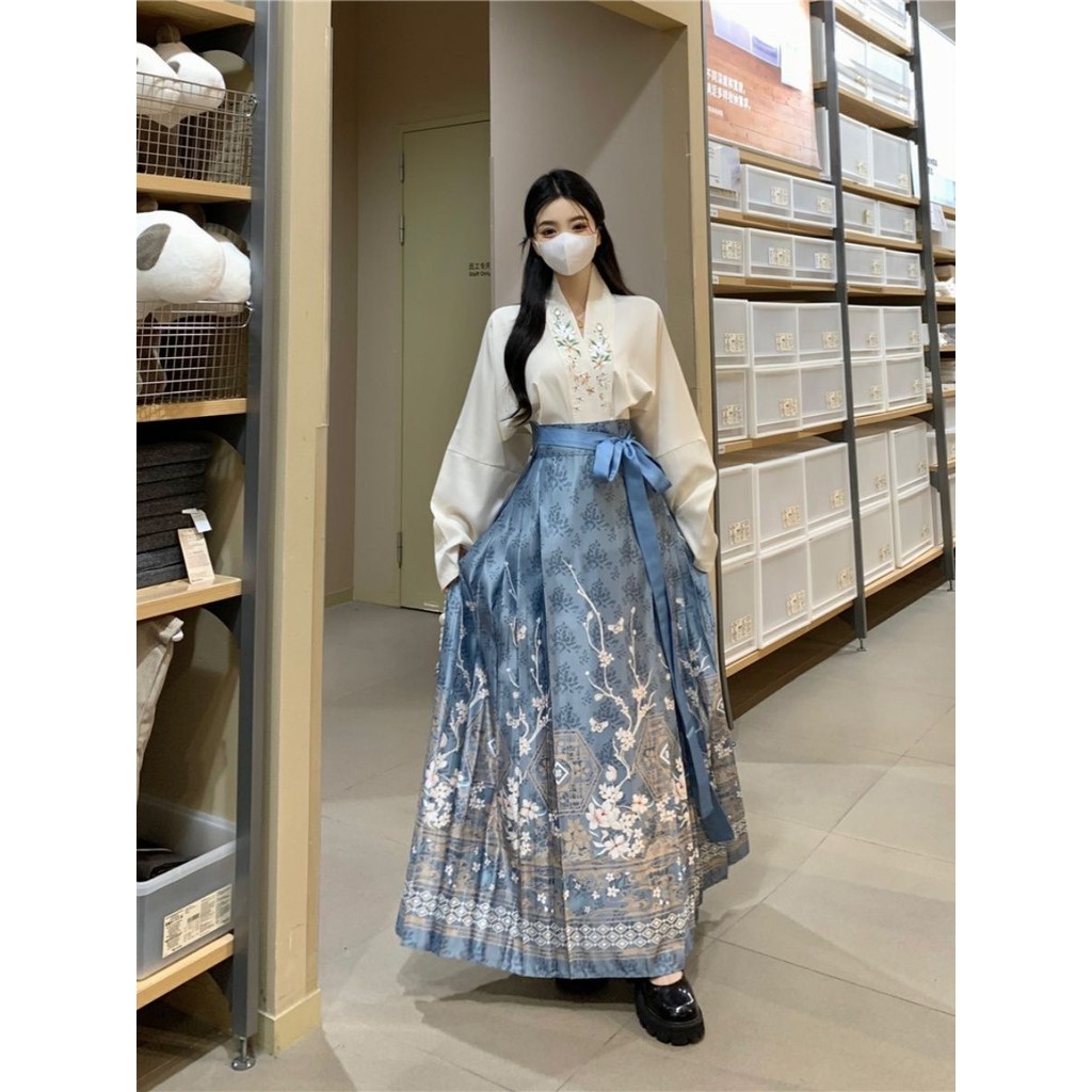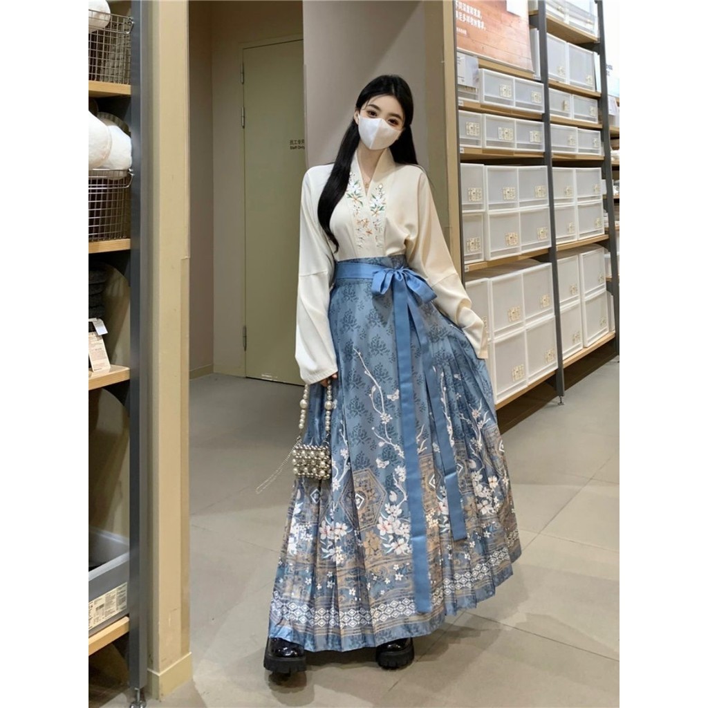 Pakaian Wanita Rok Muka Kuda Gaya Set Hanfu Peningkatan Baru dengan Setelan Dua Potong Gaya Nasional