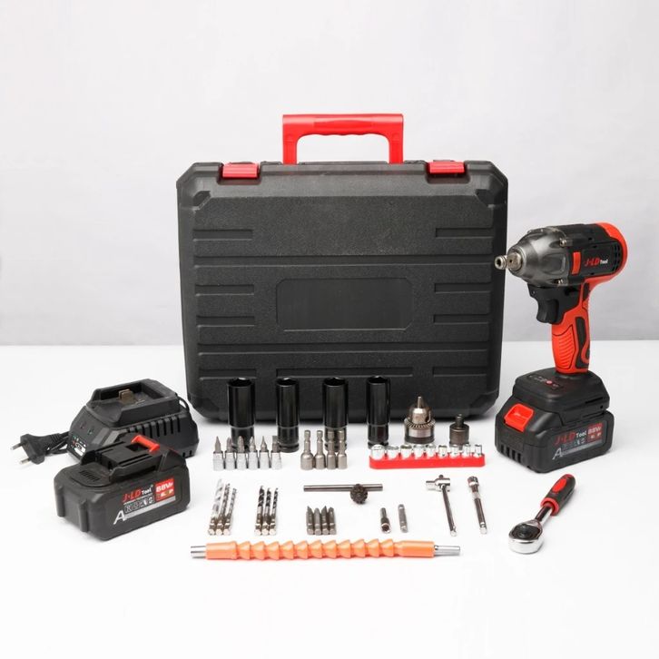 JLD Mesin Bor Impact Baterai 88VF Fullset Impact Bor 2Baterai 350NM Impact Wrench Impact JLD Set