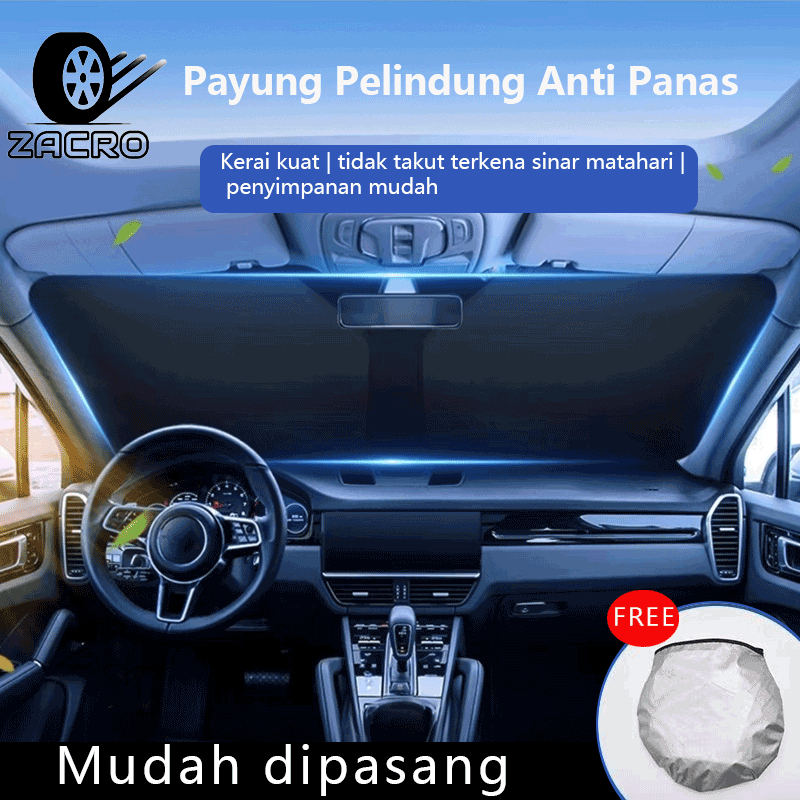 ZACRO PAYUNG MOBIL PAYUNG PELINDUNG ANTI PANAS MOBIL KACA DEPAN PENUTUP KACA MOBIL ANTI PANAS UKURAN TERBUKA 145X80CM