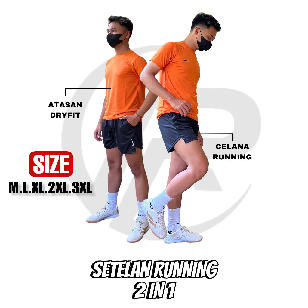 Setelan Running Kaos Olahraga Jersey Gym Tenis & Celana Running Drifit Size M-L-XL-XXL dan JUMBO 3XL