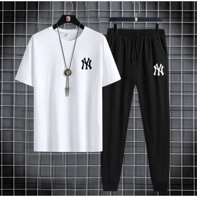 Baju setelan Celana panjang pria + Kaos cotton pakaian set baju olahraga pria atasan