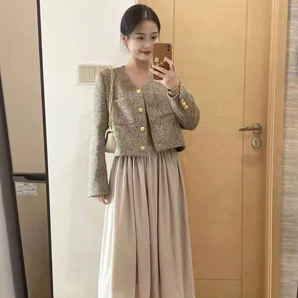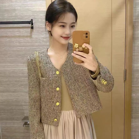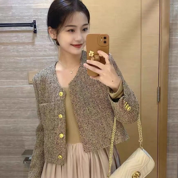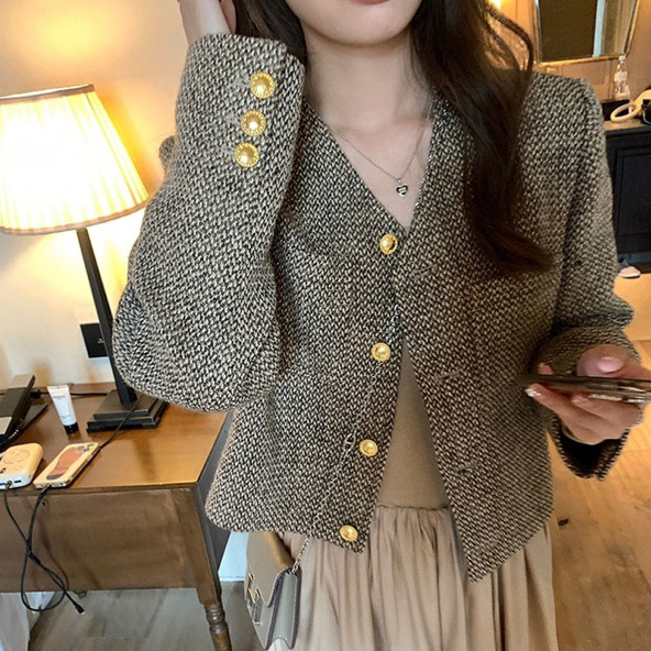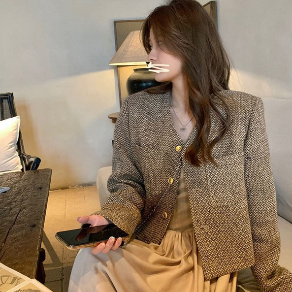 Blazer Crop Wanita Korean Style - Outerwear Pendek Warna Coklat, is & Elegan untuk Casual/Kerja M594