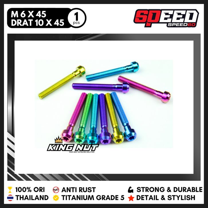 Baut Titanium M 6 x 45 Drat 10 x 45 Grade 5 King Nut Thailand