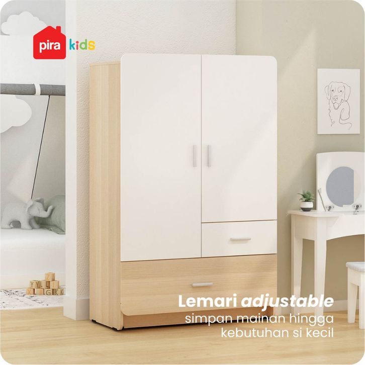 ORIGINAL Pira Kids - Woody BL80 Lemari Pakaian Anak 2 Pintu Full Rak ihicg
