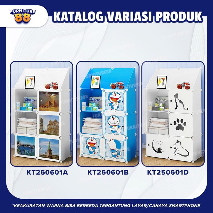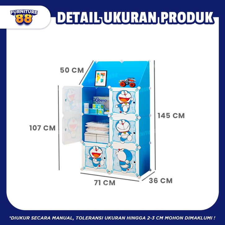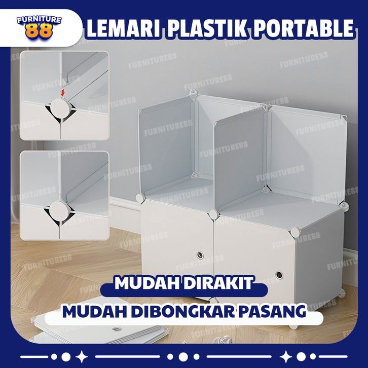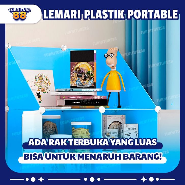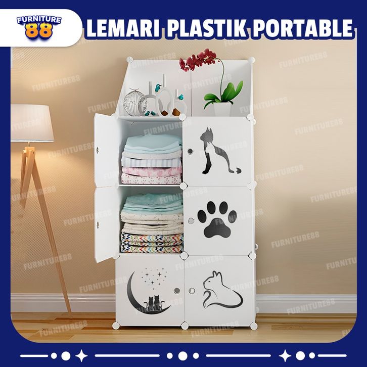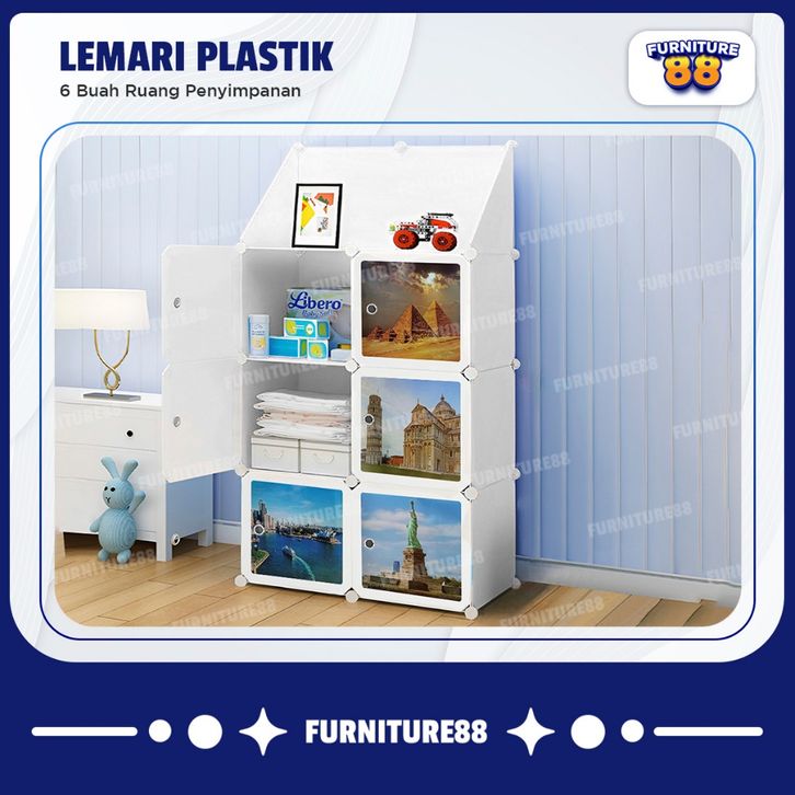 ORIGINAL Lemari Plastik Lemari Pakaian Anak Kos Wardrobe 6 Pintu 2 Rak Lemari Bongkar Pasang - Furniture 88 egakk