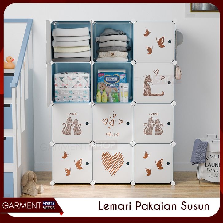 GROSIR Lemari Pakaian Anak Susun Plastik 12 Pintu Penyimpanan Baju Celana Rak Portable Rak Buku Helm Anti Debu
