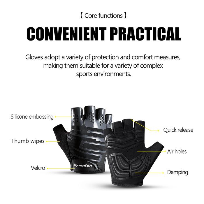 Summer Sport Cycling Gloves Black Fingerless Thicken Shock Pads SBR Anti-slip Anti-sweat Fitness Motorbike Gloves Men