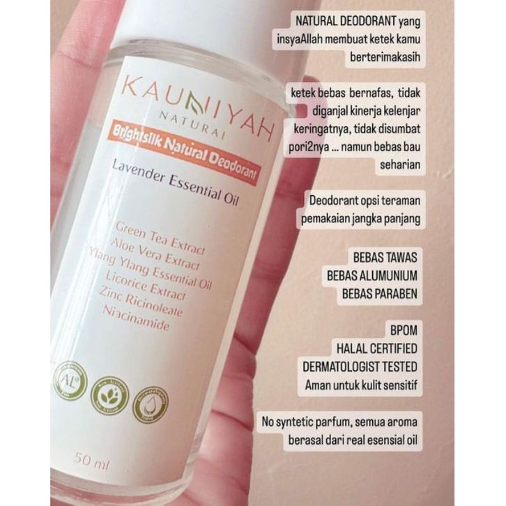 Kauniyah Natural Brightsilk DEODORANT 50 mili Lavender Essential Oil - ORIGINAL by Ummu Balqis - Deodoran - Deo Alami -