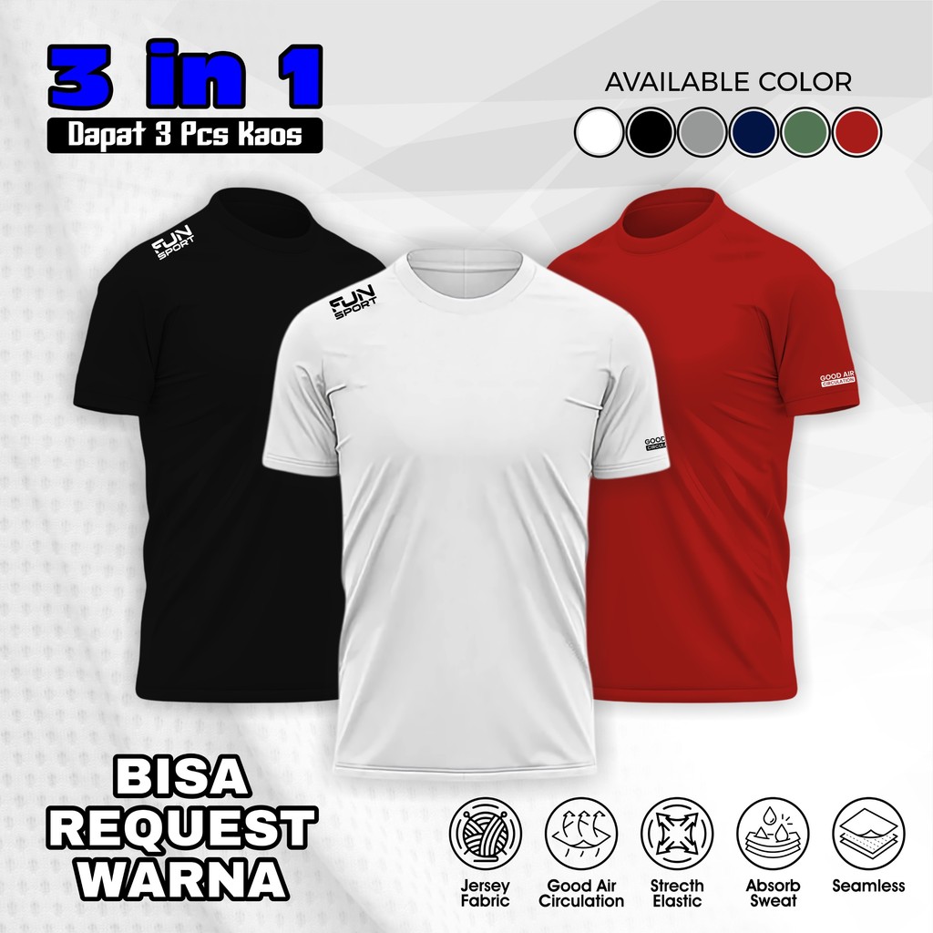 Jersey Paket 3 pcs Baju Kaos Olahraga Lari t shirt Pria Fun Sport Bahan Dry Fit Breathable Quickdry