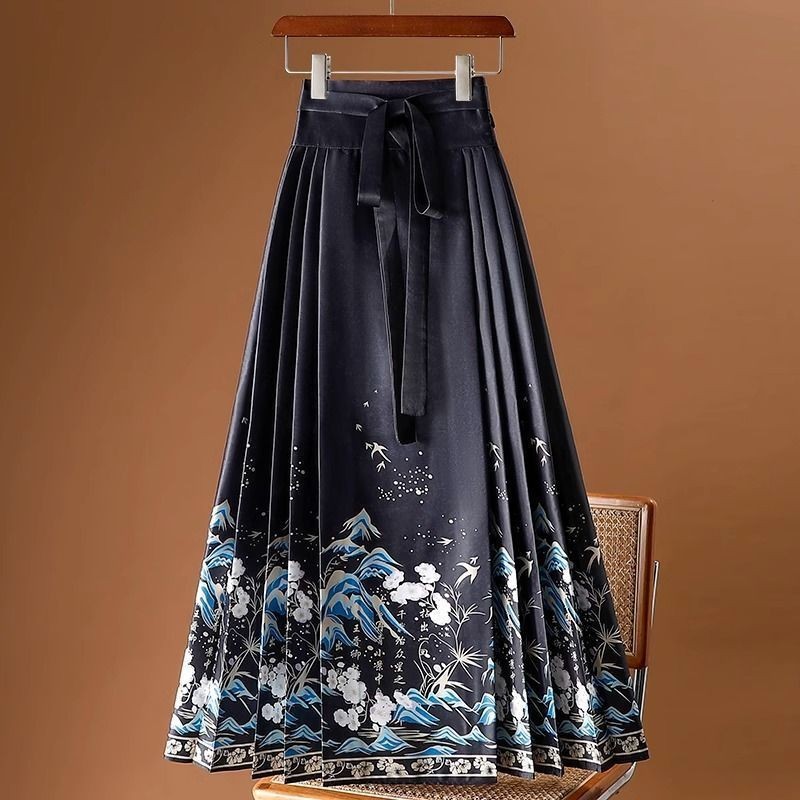 Rok Wajah Kuda Wanita, Bawahan Ramping Semua Gaya Kuno Hanfu Ditingkatkan Ukuran BesaraRok Garis