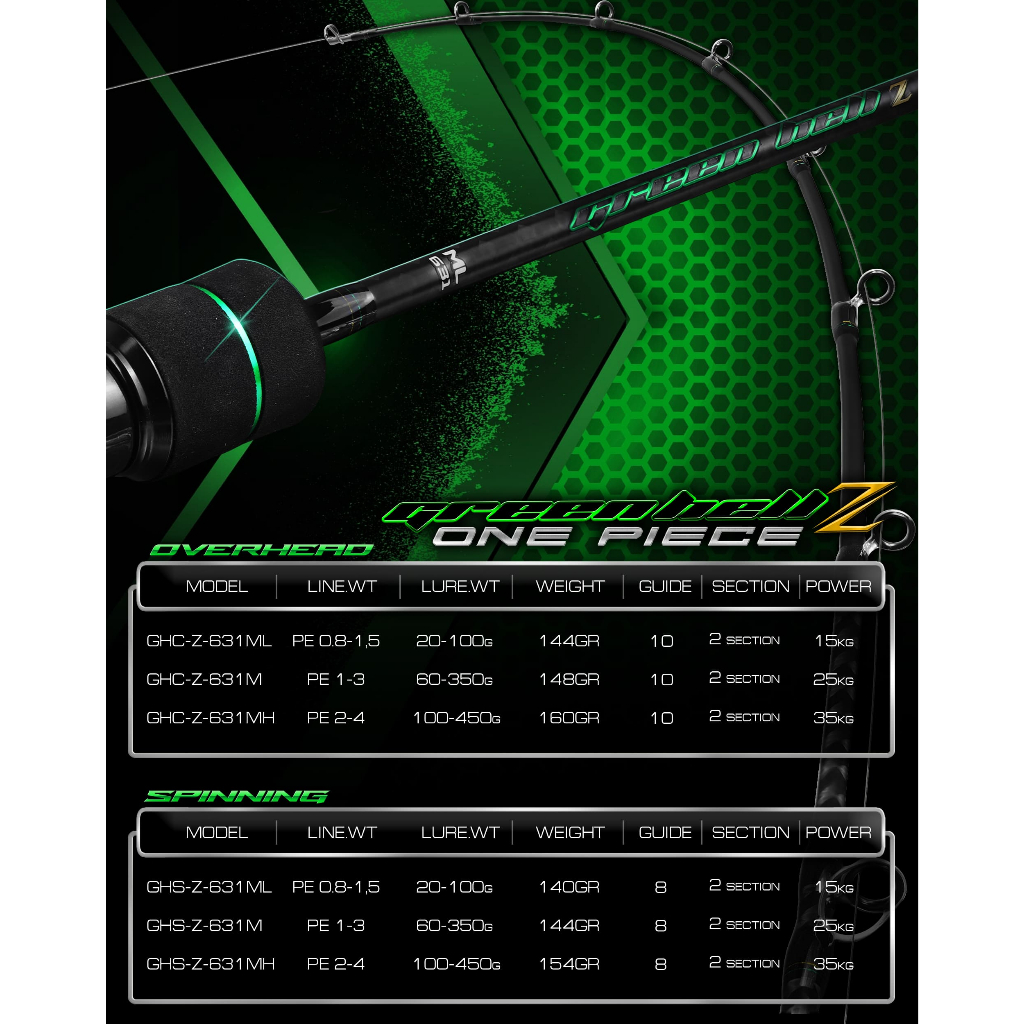 Joran Pancing Daido - Joran Green Hell Z Carbon Solid Spinning Overhead 185cm Retuned Solid Carbon 30t Twist X Karbon