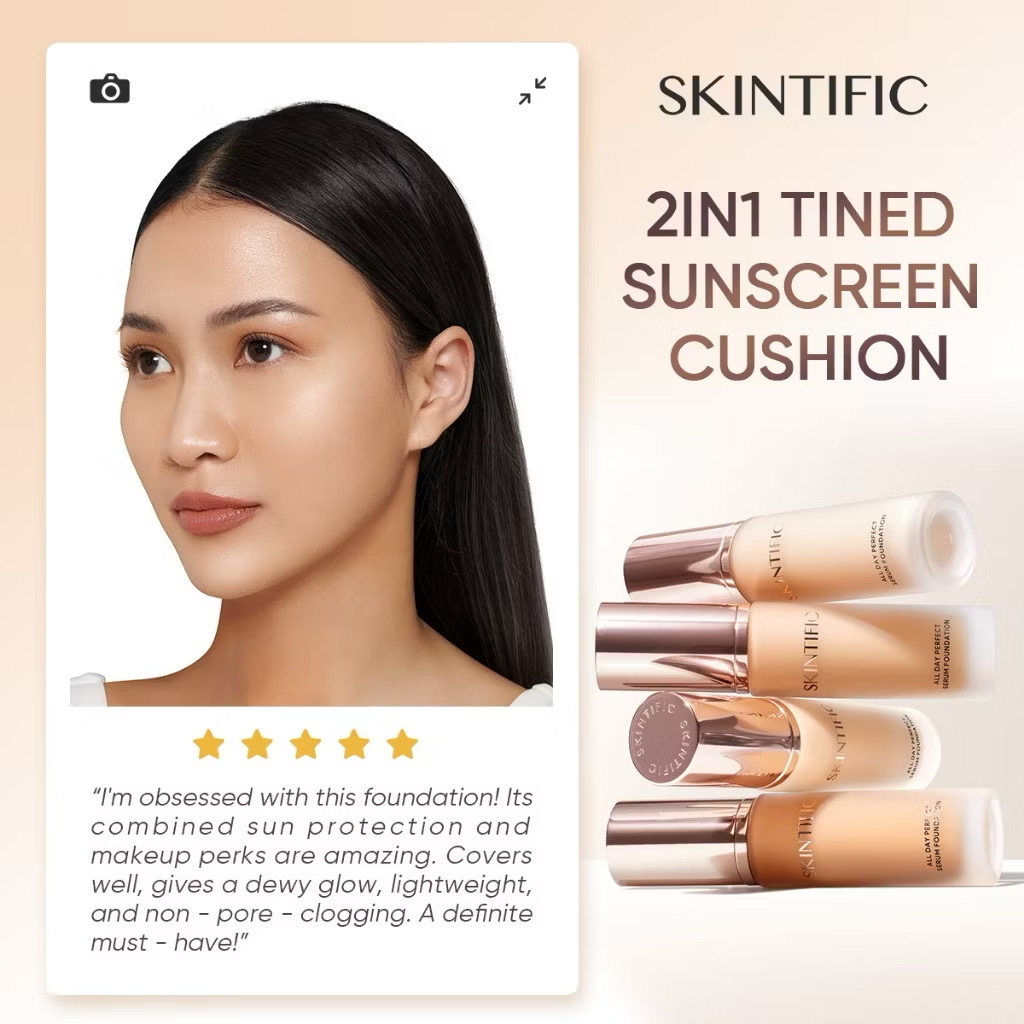SKINTIFIC - Cover All Perfect Cushion | Skin Tint SPF 35 PA++++ High Coverage Serum foundation12H Oil-Control Glow Fi