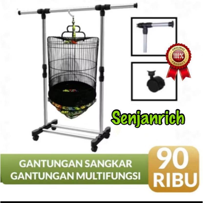 GANTUNGAN BURUNG JEMURAN BURUNG SANGKAR KANDANG BURUNG MULTI FUNGSI STAINLESS 4Roda by SJR-Olshop