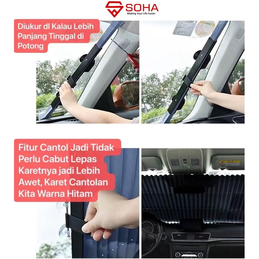 AM-27 TELESCOPIC SUN SHADE SUN SHIELD PENUTUP KACA DEPAN MOBIL PELINDUNG PANAS DARI SINAR MATAHARI ELASTIS BISA POTONG MELINDUNGI DASBOARD / INTERIOR MOBIL SIMPLE DESIGNT