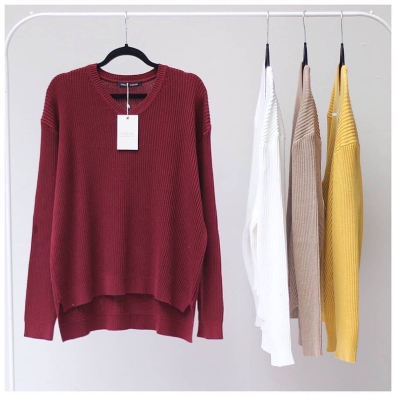 (Gratis Ongkir) VIONA - ATASAN RAJUT - VNECK BOXY RAJUT SWEATER