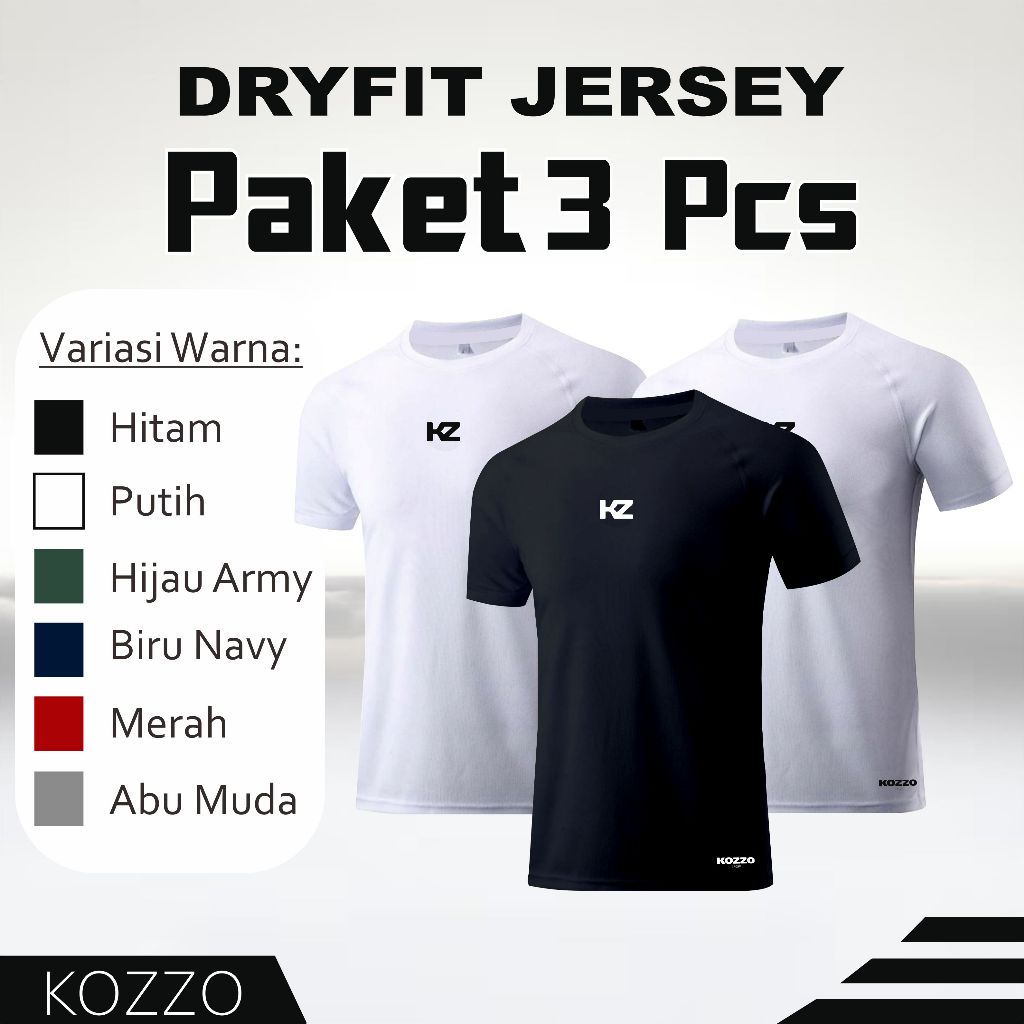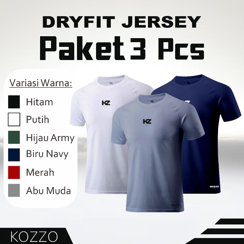 Paket Hemat 3 pcs Dry Fit KZ Kaos Baju Olahraga Pria T-Shirt Jersey Lari Bahan Breathable Quickdry