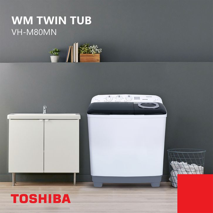 TOSHIBA Mesin Cuci Dua Tabung 7.0kg Model VH-H80MN Twin Tub - High Blade Pulsator