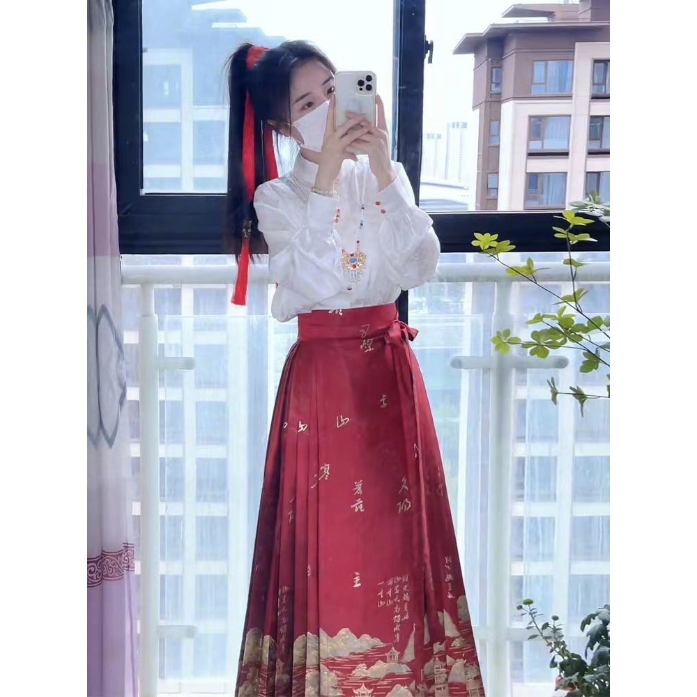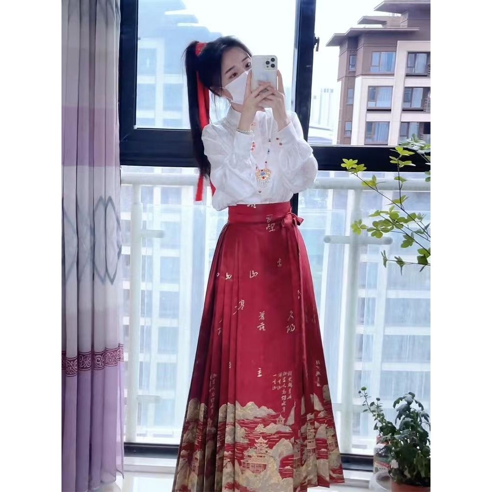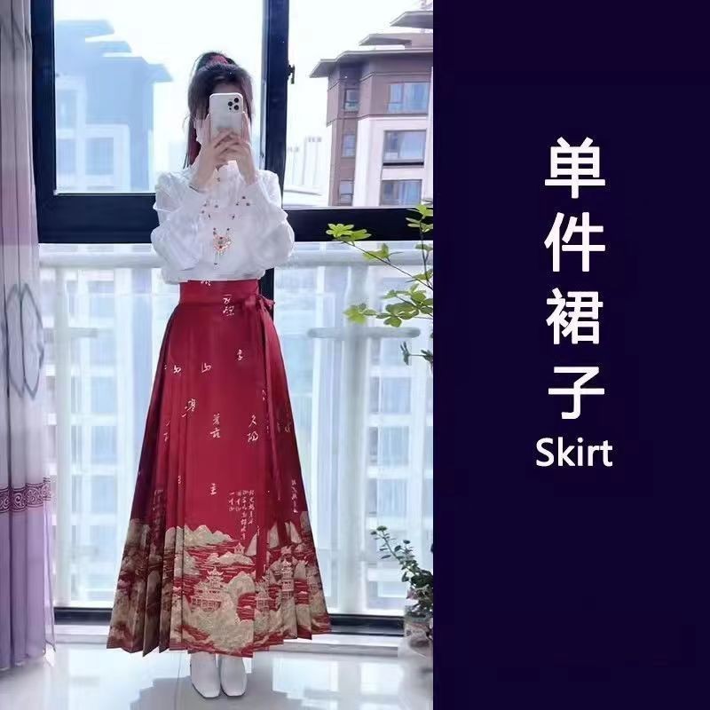 Rok Wajah Kuda Merah Tiongkok Baru Wanita Kualitas Tinggi , Teratas Gaya Tionghoa Plus Ukuran Hanfu