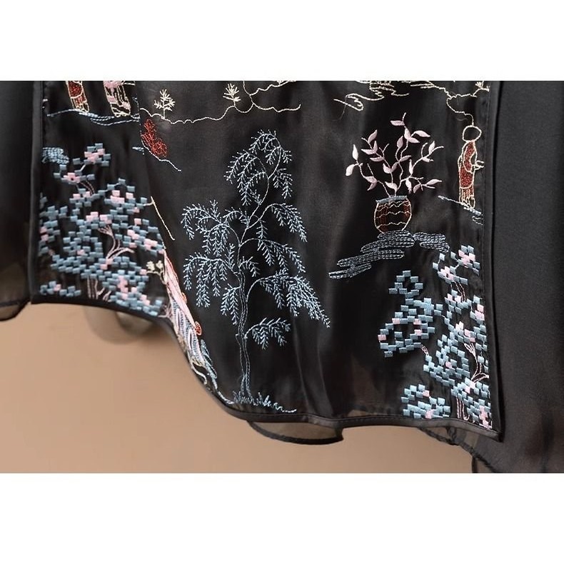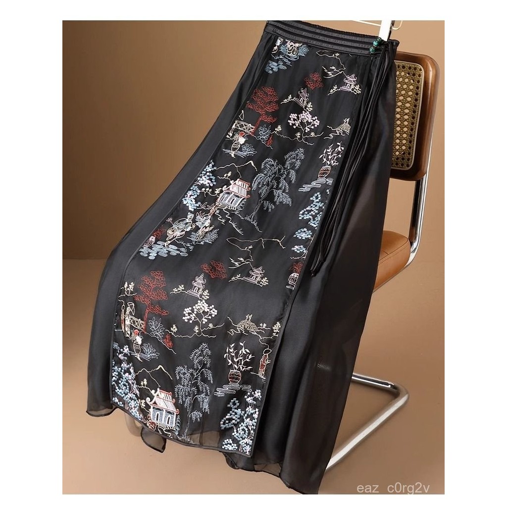 Mesin Gaya Nasional Tiongkok, Hanfu Rok Wajah Kuda Ditingkatkan Bordir Mesin Gaya Nasional Wanita a Rok Jaring Kata Ouge