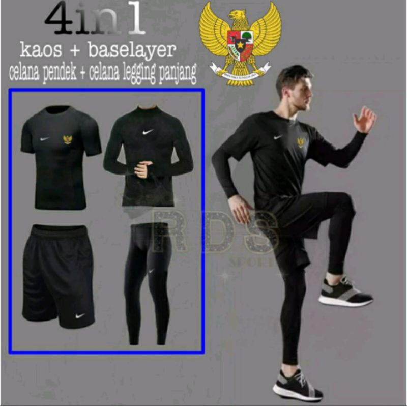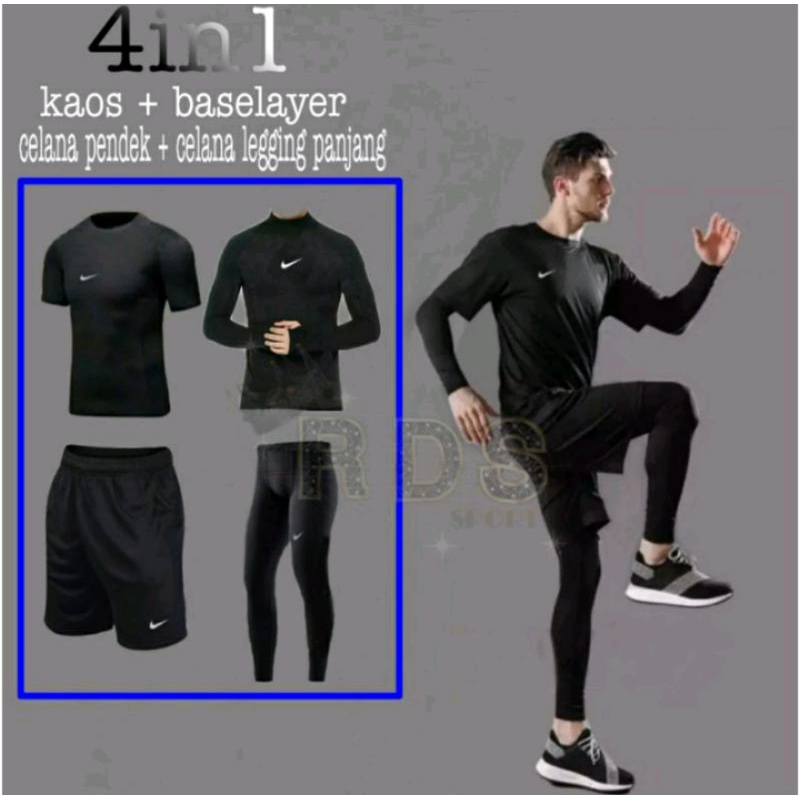 Stelan Baju Olahraga Pria Dry-Fit Jersey Pendek Baju Manset Baselayer Panjang Celana Legging Panjang Dan Celana Pendek Kolor