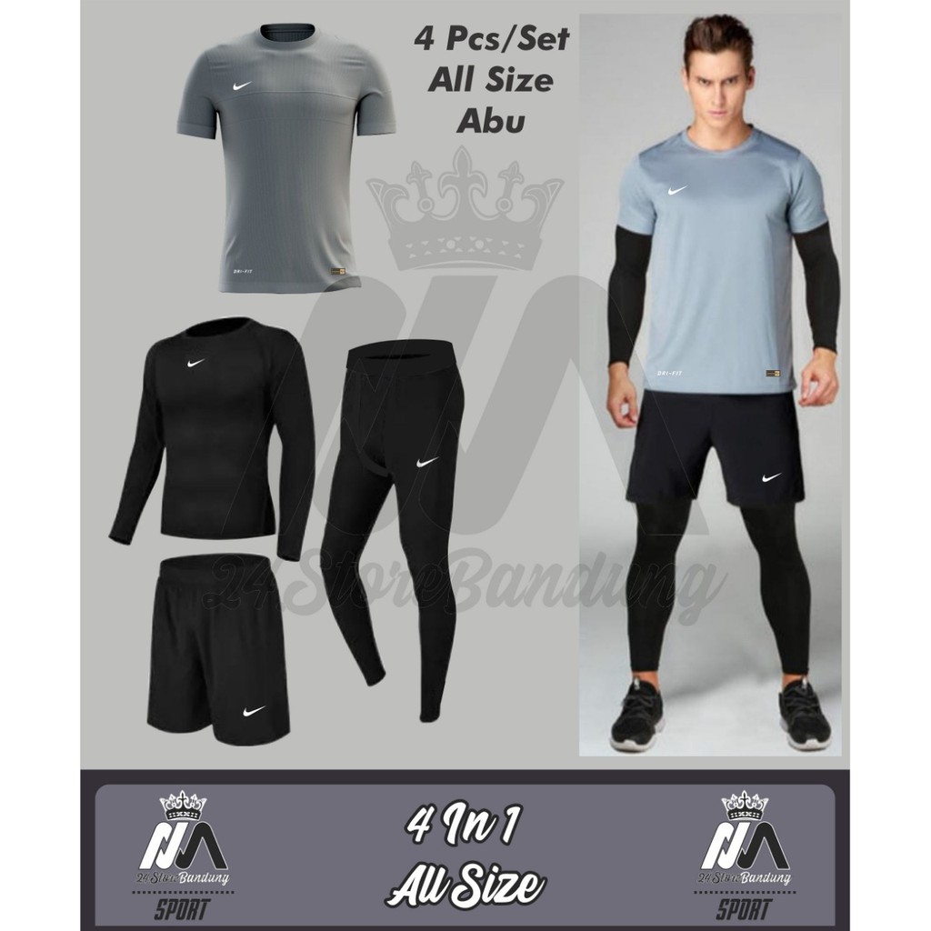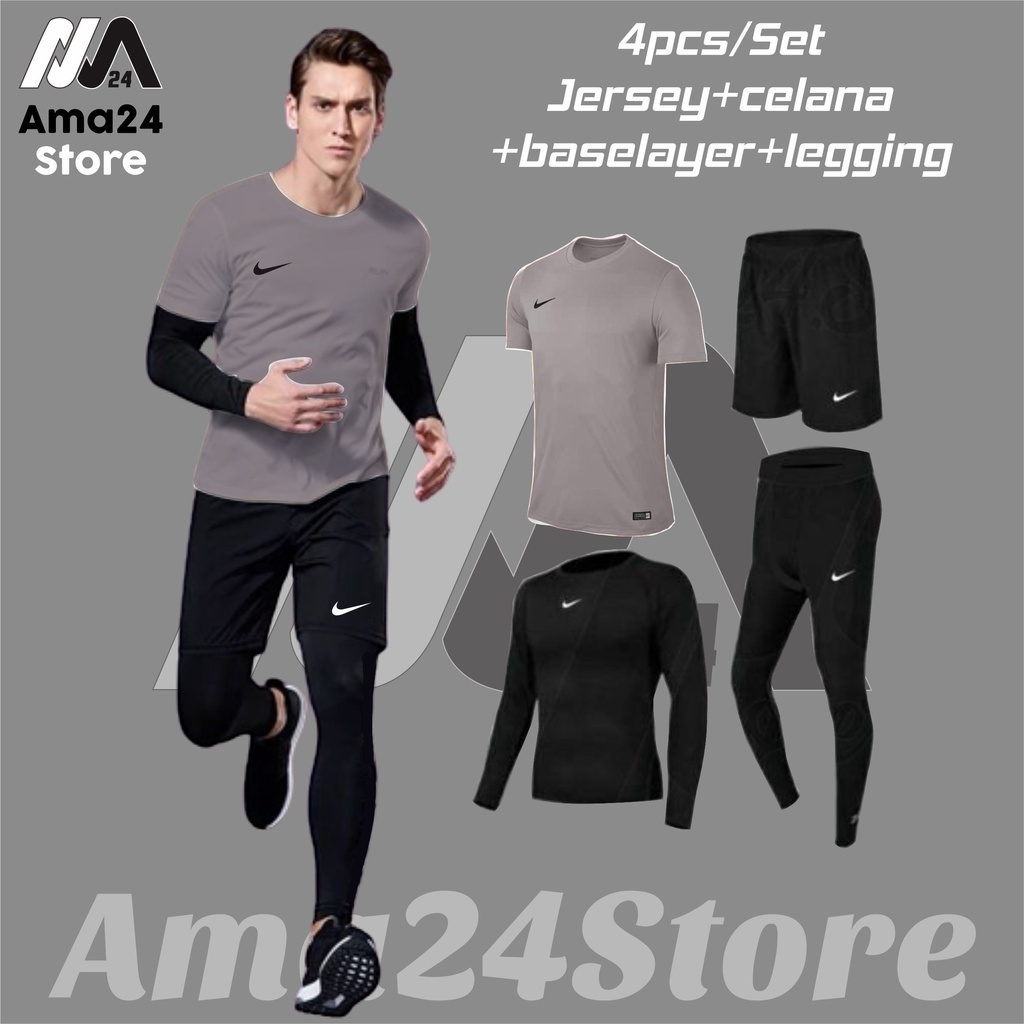 Setelan 4 In 1 Jersey Baselayer Celana Pendek Lejing Olahraga Futsal Sepakbola