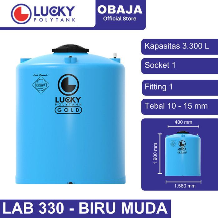 Lucky Polytank Toren / Tandon Air LAB 330 Lucky Polytank Biru Muda