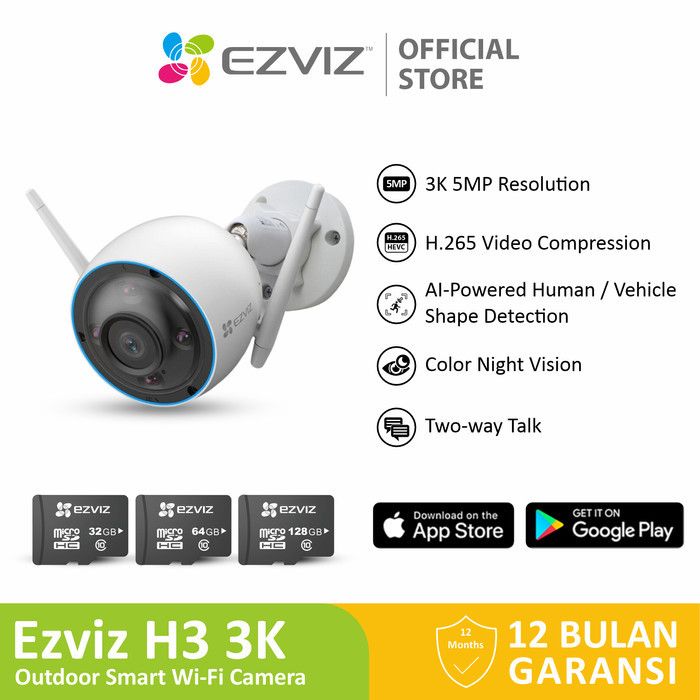 Ezviz H3 3K Smart CCTV Outdoor Home Wifi IP Camera w/SD Card 32/64/128GB