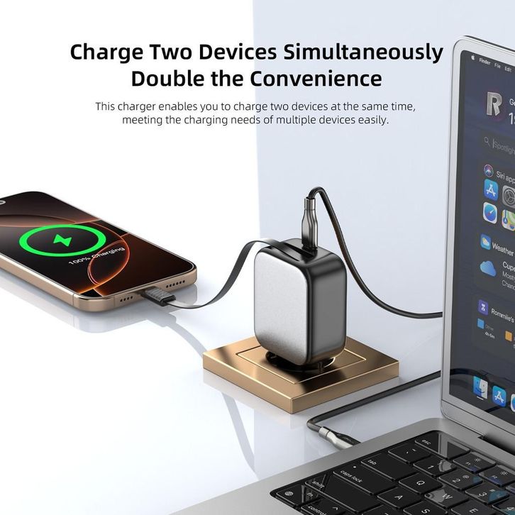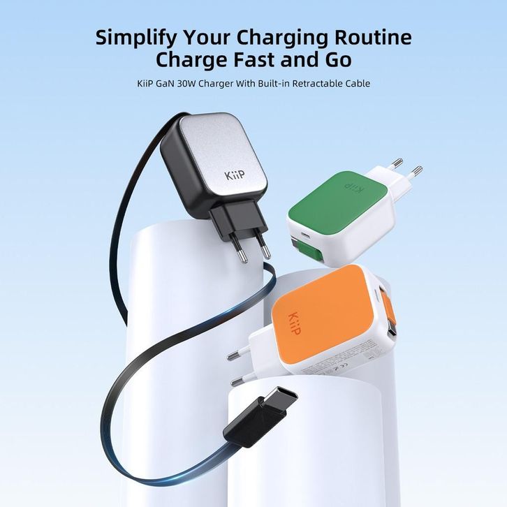KiiP C30T Kepala Charger GaN PD Fast Charging 30W Retractable Built In Cable Type C
