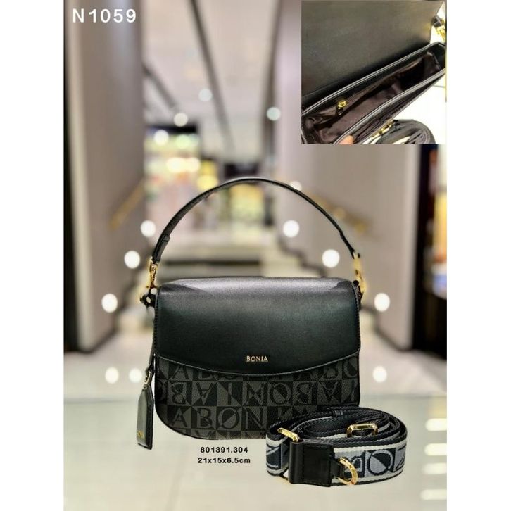 tas bonia original sling bag oval miley monogram hitam tali lebar