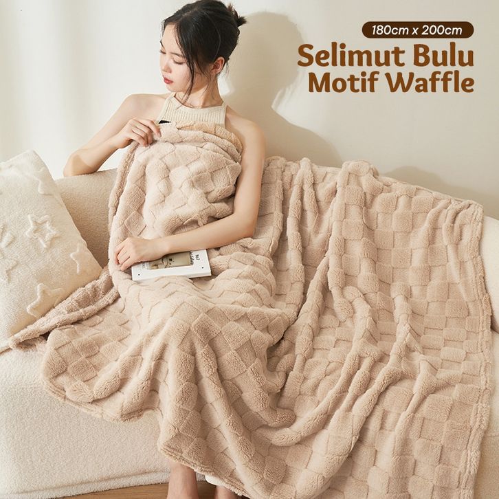 Selimut Bulu Tebal Polos Embos Uk 180x200cm Halus Selimut Bulu Halus Motif Waffle Dewasa Polos TebalTerlaris