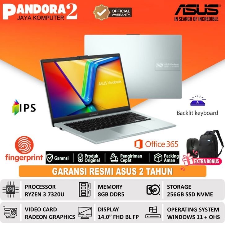 Laptop ASUS Vivobook Go 14 E1404FA Ryzen 3 7320U 8GB 256GB FHD BL FP Win11Home Original