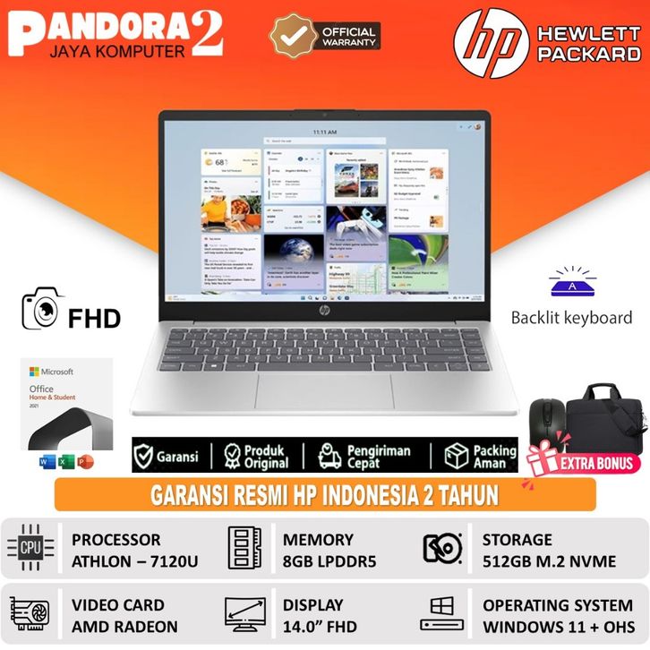 HP Laptop 14 em0222AU em0223AU AMD Athlon Silver 7120U 512SSD 8GB FHD Win11 Baru