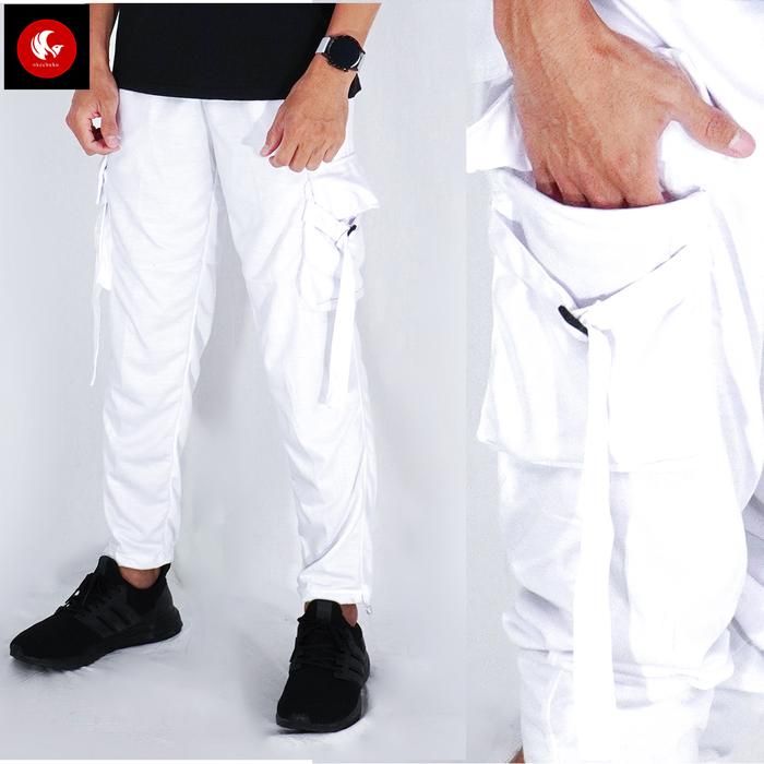 Okechuku JULIO Celana Cargo Pria Celana Panjang Pria Cargo Jogger Pria - Putih, M fit to L