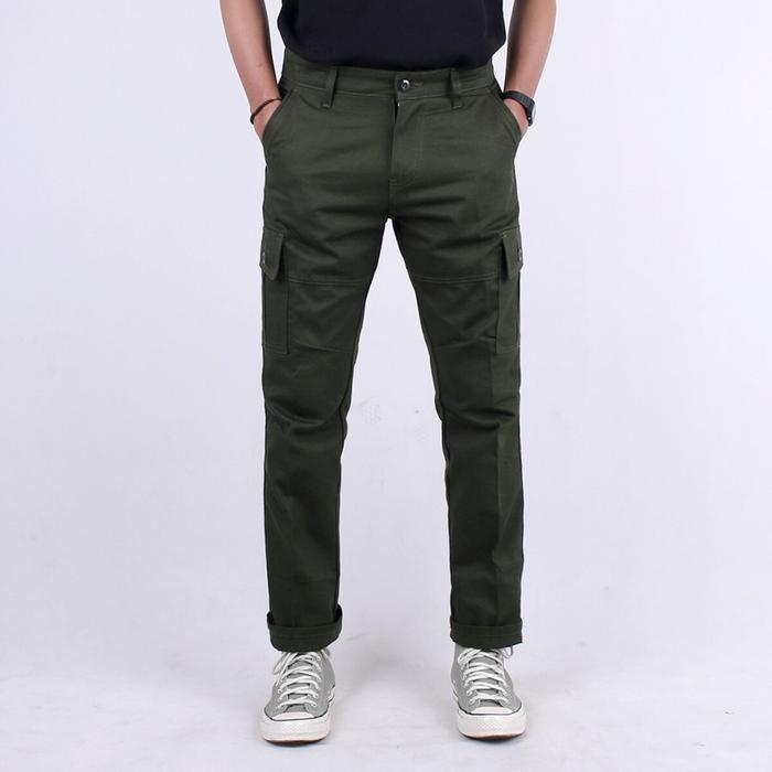 Melo Celana Cargo "Logan" - Panjang Slim Fit Katun Twill Hitam Unisex - Hitam, 36