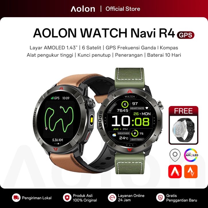 【GPS】Aolon Navi R4 Jam Tangan Smartwatch 46mm 6 Satelit GPS Amoled Pelacakan Olahraga Senter Altimeter Smart Watch Pria