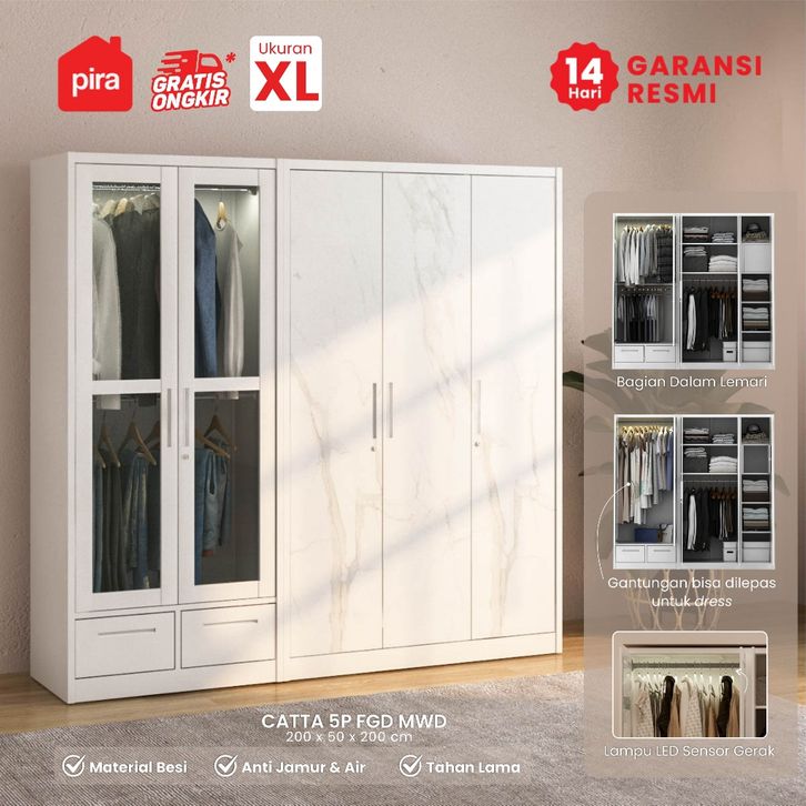 PIRA - CATTA 5P FGD MWD Lemari Pakaian Besi 5 Pintu dengan Laci dan LED