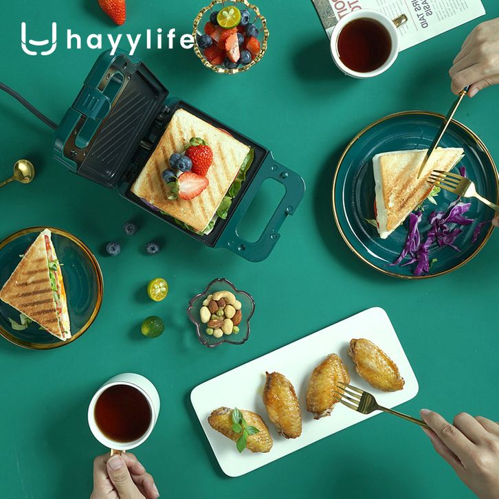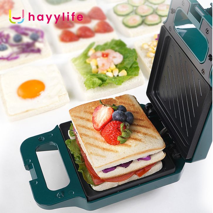 Pemanggang Roti Hayylife Sandwich Maker Breakfast Pemanggang Roti Multifungsi Anti Lengket Low Watt HL-DAA851
