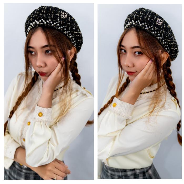 FOLADY PO - P002 Topi Barret Tweed | Baret Oktagonal Bahan Wol Katun Gaya Retro Korea Topi Fashion Selebgram Wanita