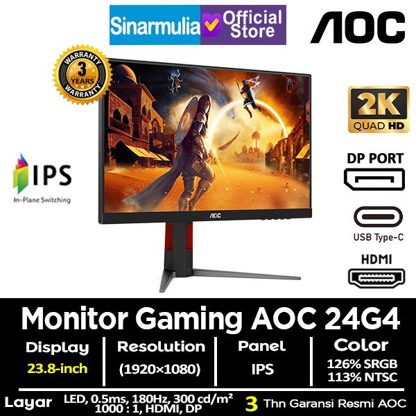 EKSKLUSIF Monitor LED Gaming AOC 24G4 23.8" IPS 180Hz 0.5ms 100%sRGB acogh