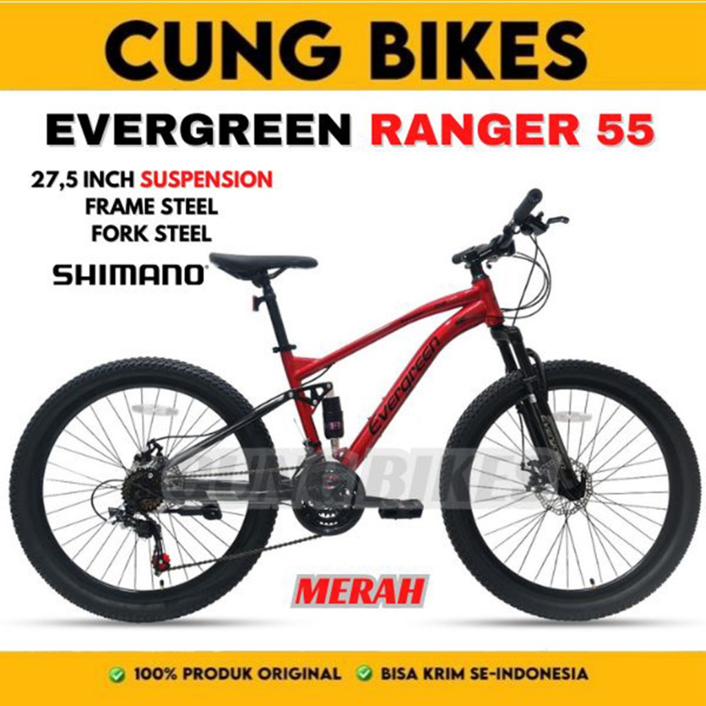Sepeda Gunung MTB 27.5 Inch Evergreen Ranger R 55 Full Suspension 3 x 7 speed SHIMANO